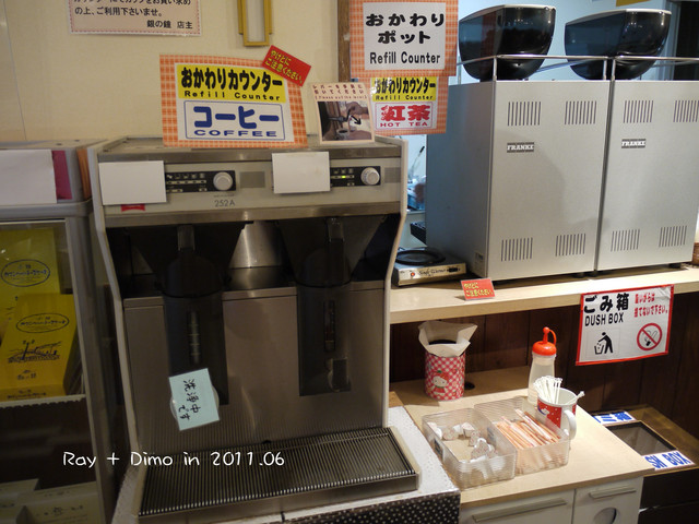 可以選咖啡或是紅茶, 熱的可以無限續杯, 冰的則只能續杯一次