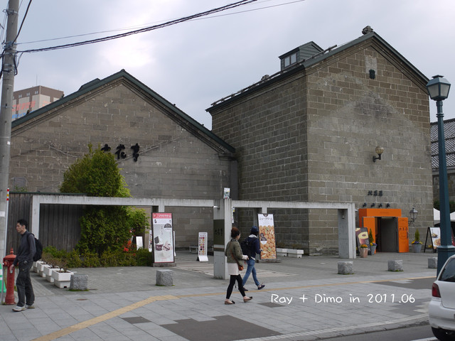 北海道很有名的六花亭與北菓樓比鄰而居, 灰色的磚牆是小樽的特色