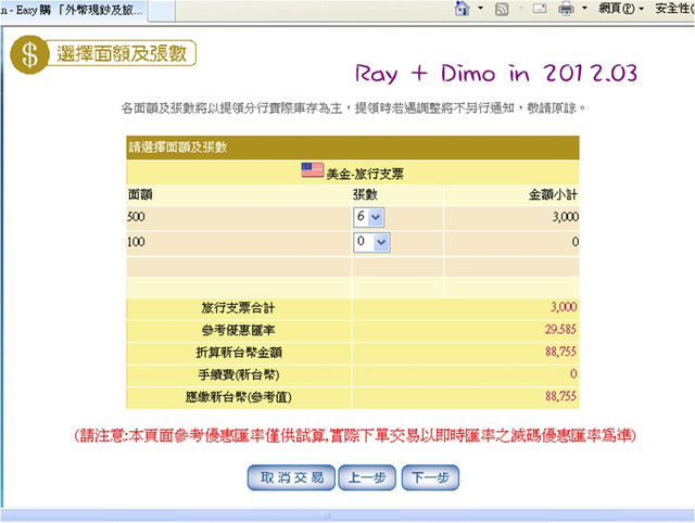 例如cash多少錢, traveller's check多少錢....等等