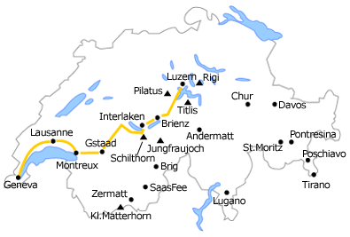 黃金列車是將琉森湖, 布利恩茲胡, 土恩湖, 列馬湖等瑞士風光最美的湖泊