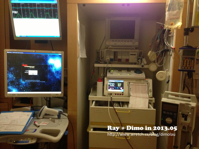 子宮收縮的痛是會讓你整個臉揪在一起,挺不起腰來的!病床旁邊就是這些監控的機器,像不像來到軍事秘密基地的樣子,非常誇張!